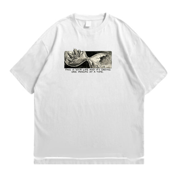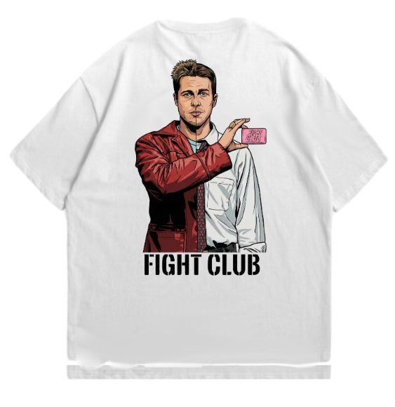 שני צדדים למטבע, שני צדדים לאותו אדם. עיצוב גרפי מרהיב המציג את הפיצול המפורסם ביותר בקולנוע: מצד אחד "המספר" בחולצה המעונבת והאפורה, ומצד שני טיילר דרדן במעיל העור האדום והאייקוני. באמצע? הסבון הוורוד ששינה את הכל. העיצוב המושלם למעריצים שרוצים ללבוש את הכאוס והסדר בו זמנית.
