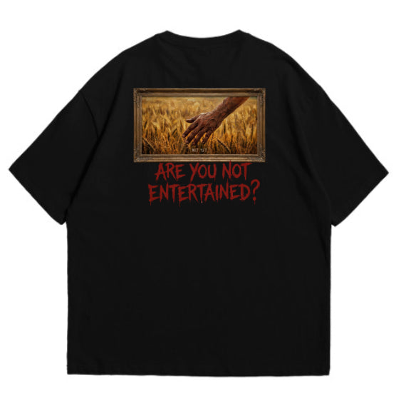 "האם אתם לא משועשעים?!" החולצה הזו היא לא רק פריט אופנה, היא יצירת אמנות של ניגודים. היא לוכדת את הטרגדיה והעוצמה של הגלדיאטור הגדול מכולם.