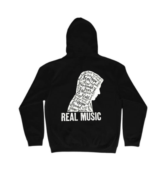 יש מוזיקה שפשוט מבינה אותך. העיצוב הזה נוצר עבור מי שהמילים הן יותר מסתם חרוזים בשבילו. בתוך צללית האדם המהורהר, דחוסות המילים שמרכיבות את המאבק הפנימי של כולנו: פחד, ספק, תקווה, חיפוש. מתחת, החותמת "REAL MUSIC" מזכירה לנו למה אנחנו כאן – בשביל האמת, הכנות והרגש. זו לא סתם חולצה, זו הצהרה. לבש את מה שאתה מרגיש.